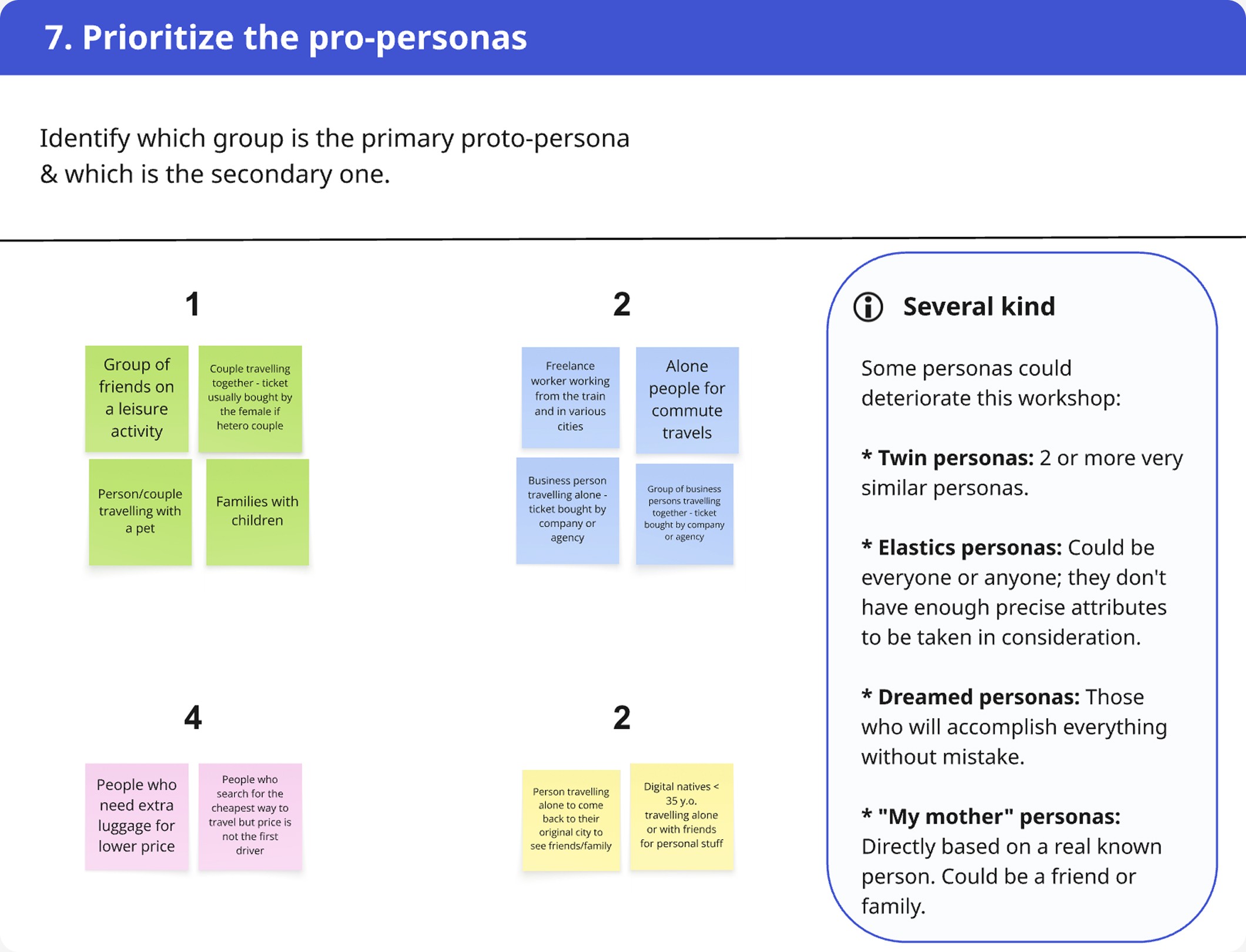 With a restrained schedule and limited resources, I chose to anchor the workshop around proto-personas instead of qualitative interviews, or observational studies.